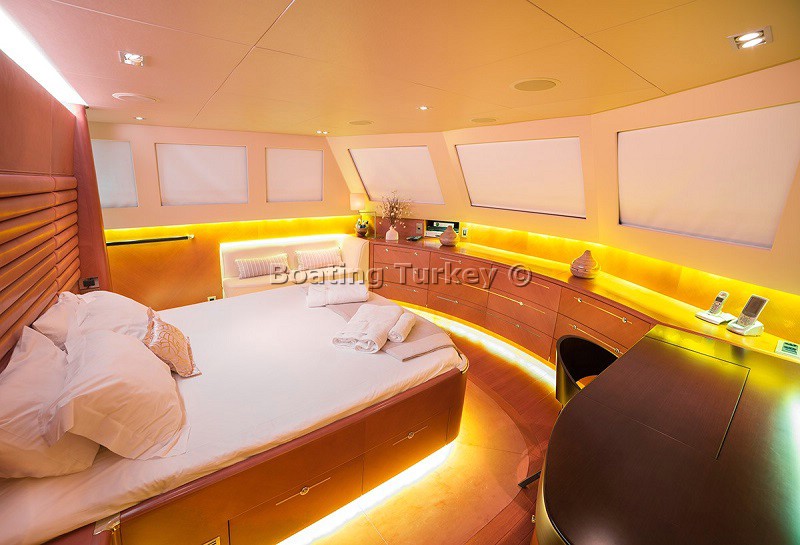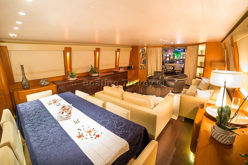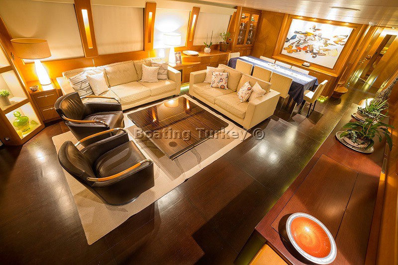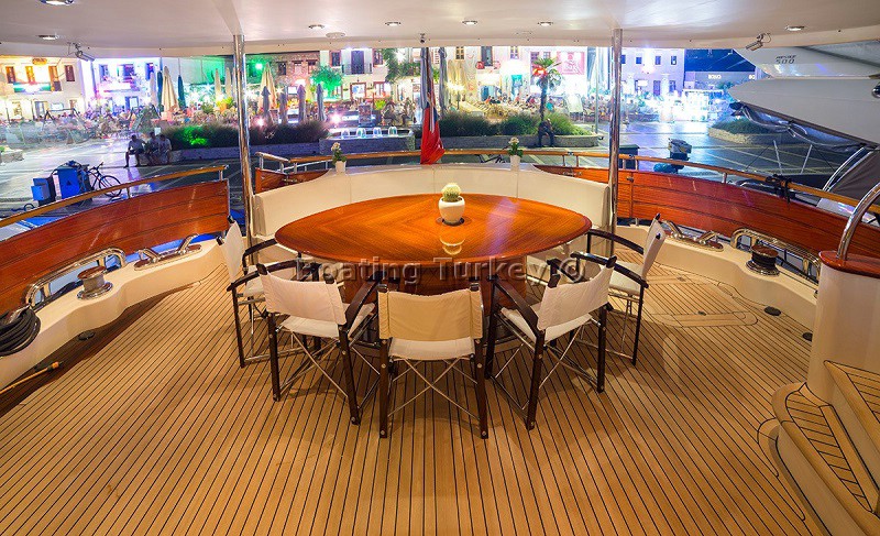 From our first moment on board when we were shown around the bedrooms, bathrooms, dining area and so on I knew I would be having a once in a lifetime experience. The polished wood, the royal blue shade cloths and sunbathing areas all added to the feeling of luxury during our two weeks saling the stunning turkish waters and visiting the beautiful bays and sea side villages and ports along the coast. Every little wish of ours was immediately considered and acted upon by the crew and the Captain made sure every single day of a new view and always the best place to moor to please us. This included the use of the air conditioning at night which in late August was absolutely necessary and something we had been worrying about, though without any fuss our nights were as cool as we wanted by having the aircon on, thanks for that! The food was excellent, never boring, always very delicious and always served with grace and professionalism by the crew. The rooms were kept spotlessly clean, the whole boat for that matter washed down and scrubbed regularly and if there was the smallest problem in a bathroom for example it was dealt with immediately. We all felt that the two weeks was very good value for money and I would not hesitate to recommend your company to all of my friends.