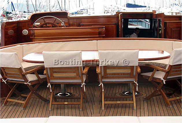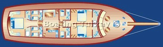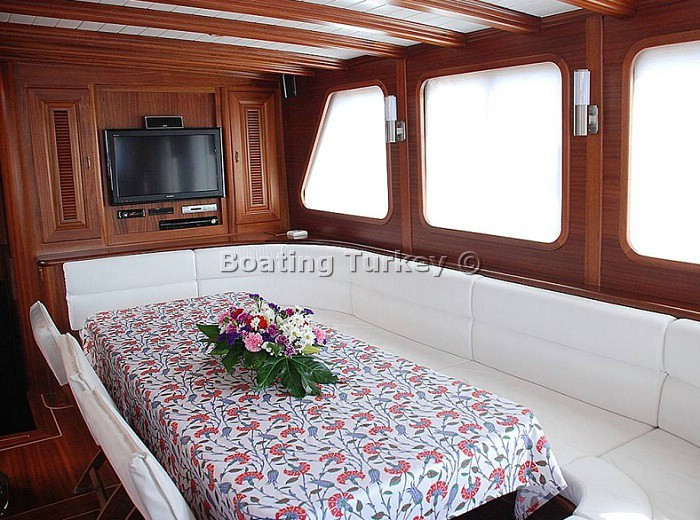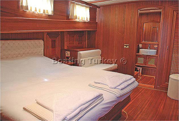 30 meters length elegant gulet L'Orient was launched in 2009, yacht has remarkable the mahogany craftsmanship for which Bodrum boat builders are renowned for. Gulet Yacht Lorient finishing is neutral and understated, allowing comfortable surroundings for a wide variety of charter guests, large salon with fully equipped bar and dining facilities. The aft deck of the gulet feature shaded full beam seating area and large alfresco dining table for up to 10 guests. The front deck offers sunbathing area with comfortable sun mattresses and sitting area. Gulet Lorient can accommodates up to 10 guests in spacious and air-conditioned 5 cabins each with private facilities, a master cabin at stern with 1 double bed and two bathrooms en suite, one with wc and a sink, one with shower cubicle and sink. 2 master cabins in front with double bed and a bathroom en suite. 2 spacious twin cabins with bathroom en suite. Charter Gulet Boat Lorient in Turkey with good early booking discounts or last minute deals, get your free charter quote and hire the gulet with the best charter price.