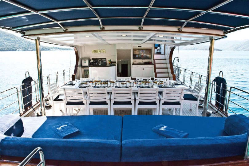 The boat was beautiful and the crew was so accommodating and friendly, always striving to make us happy. Our captain always docked in the best spots in the most beautiful little bays and our chef put together some wonderful meals, including some lovely desserts. We were even spoilt with baked cake with afternoon tea. Our captain did the barbecuing or braaing as we know it in South Africa. He was an absolute champ at cooking on the open fire on the deck. Burak, the third crew member assisted in all areas. He was an absolute character and kept my family entertained. His new name being 007.