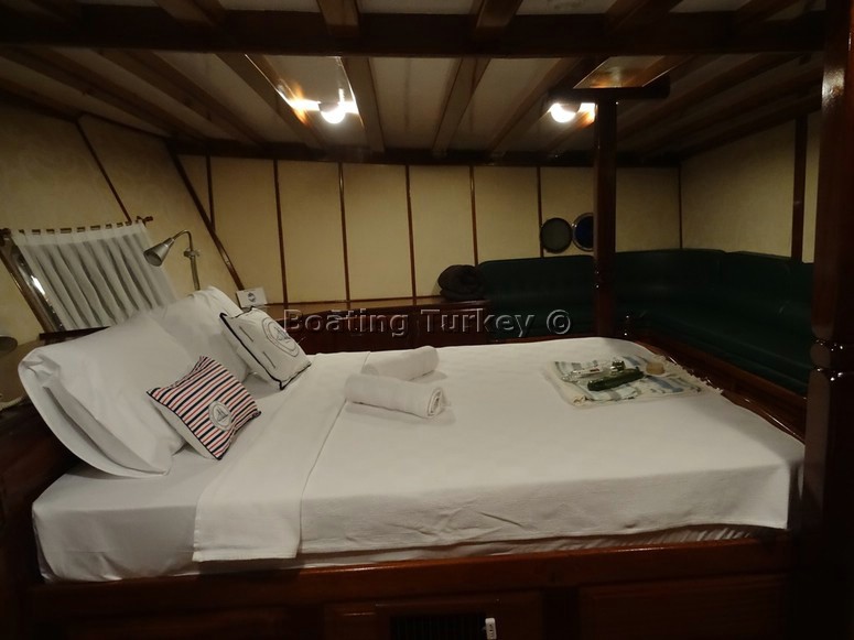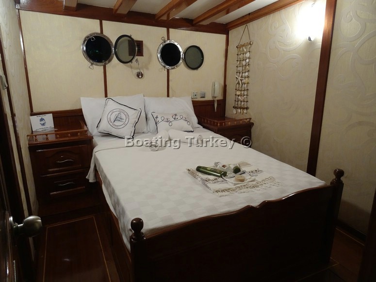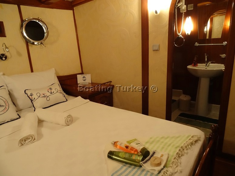 Our compact double bedroom ( used only for changing clothes ) was basic but had everything required and our en suite bathroom was basic but again suited our needs . We had asked that on my husband´s birthday we could dock somewhere and get off the gulet for a couple of hours for a change of scenery .