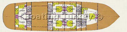 The itinerary was very flexible, and crew happy to accommodate our choices. The boat was immaculately maintained, the cabins were large and roomy, the bathrooms were spacious and had a proper shower and toilet. There was loads of deck space both up front with sunbeds for all, and at the rear, which was enormous. We loved to sleep on deck, falling asleep with the stars at night. The captain was very skilled, we were amazed how he could manoevre such a large boat into tight spaces.